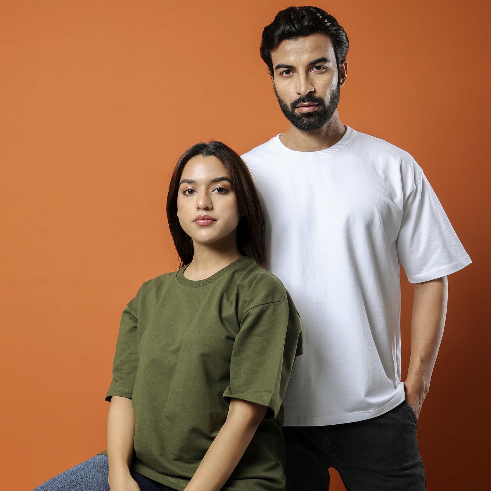 Embrace a natural, earthy aesthetic with our oversized t-shirt in a versatile olive green hue. Crafted from premium, breathable cotton, this tee features a relaxed fit, drop shoulders, and a classic crew neck. The rich olive green adds a touch of understated cool to your everyday wardrobe. Perfect for layering or wearing on its own, this is a go-to piece for effortless style and comfort.